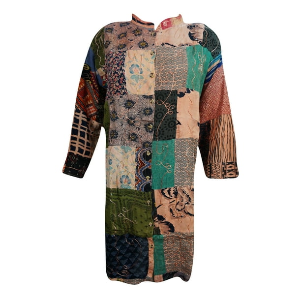 Women Tunic Dress Button Down Patchwork Design Embroidered Long Sleeves Casual Dresses L Walmart Com