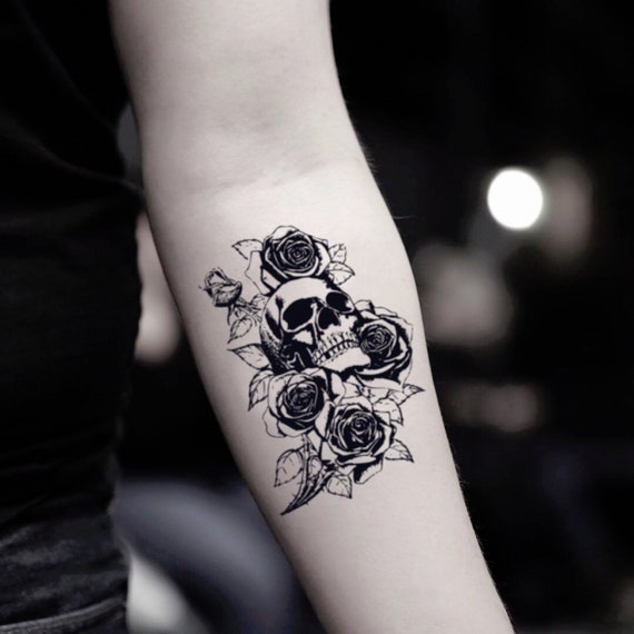Skull And Rose Temporary Fake Tattoo Sticker Set Of 2 Etsy Uk